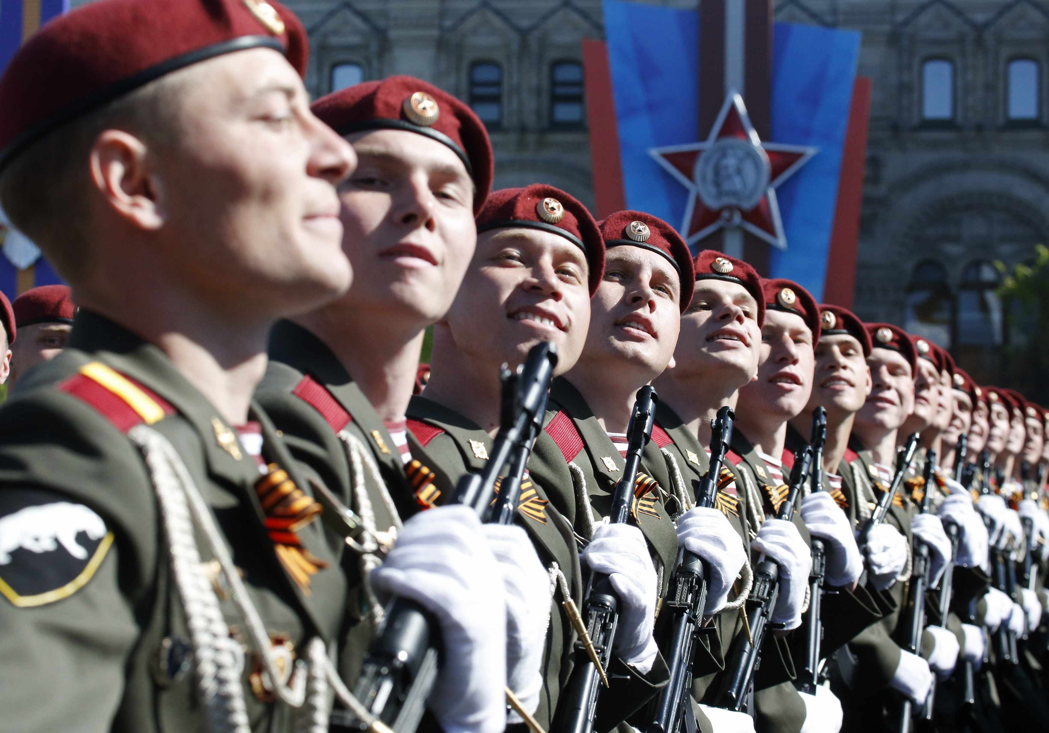 Περί τους 11.000 στρατιώτες συμμετέχουν στην εκδήλωση αυτή της ρωσικής στρατιωτiκής ισχύος, την οποία παρακολουθούν ο ρώσος πρόεδρος, ο πρωθυπουργός Ντμίτρι Μεντβέντεφ και ο υπουργός Αμυνας Σεργκέι Σόιγκου.